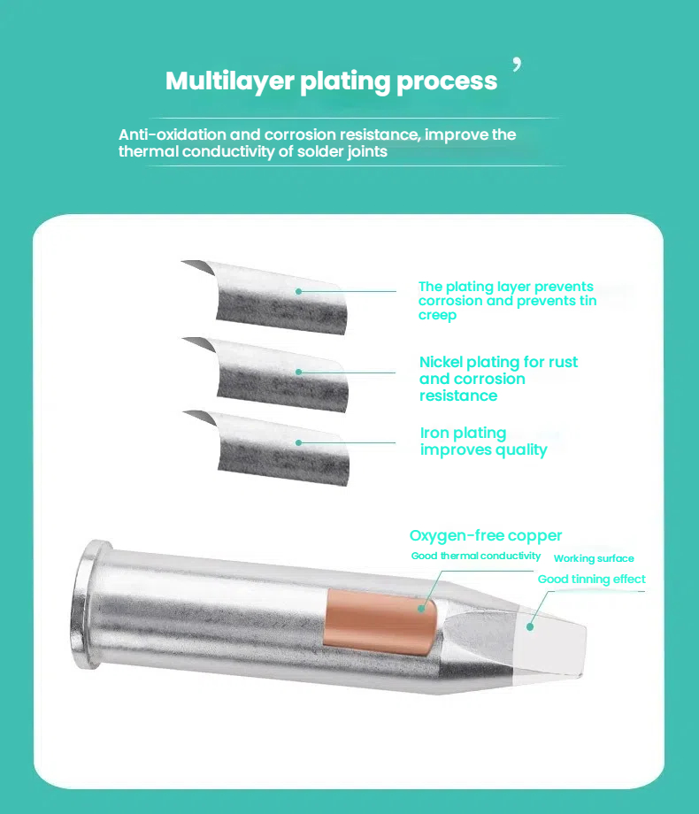 Anti-oxidation and corrosion resistance, improve thethermal conductivity of solder joints The plating layer preventscorrosion and prevents tincreep. Nickel plating for rustand corrosionresistance.